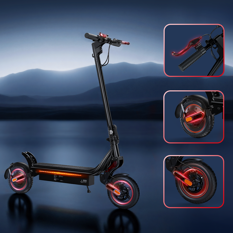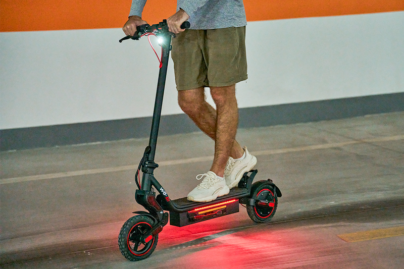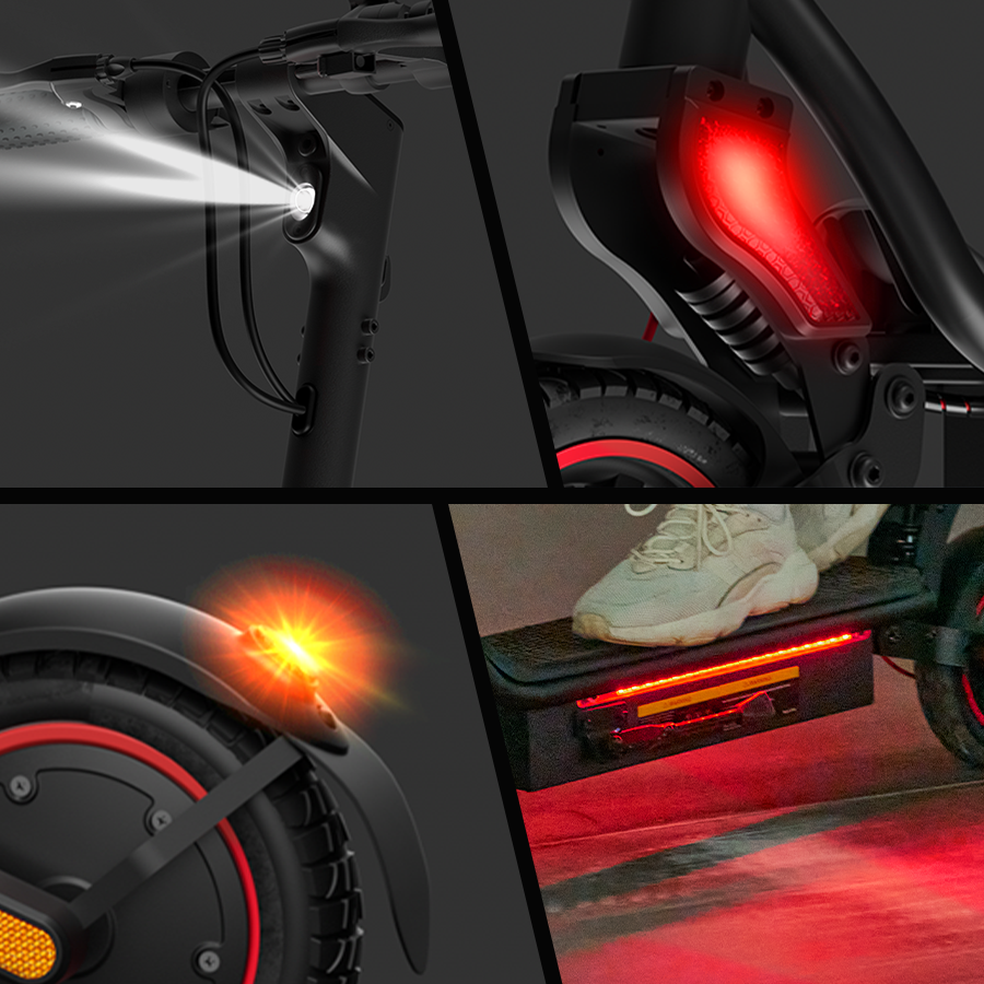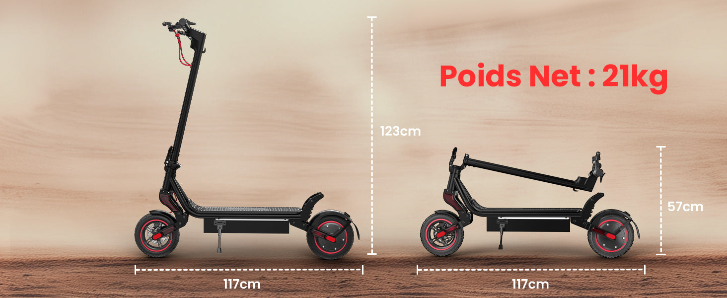 R : La trottinette dispose de phares, clignotants, feux arrière et éclairage ambiant, assurant une excellente visibilité. C’est indispensable pour la sécurité en hiver ou en zones peu éclairées.